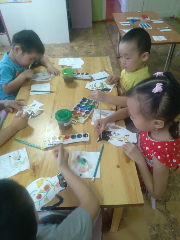 Цель: Учить детей расписывать посуду по мотивам хохломской росписи,используя цветовую гамму и элементы узора; развивать эстетическое восприятие