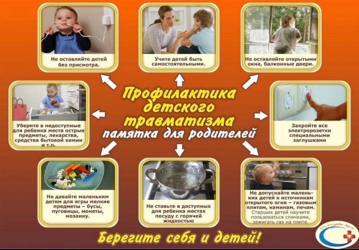 Взрослые обязаны предупреждать возможные риски и ограждать детей от них. Работа родителей по предупреждению травматизма должна идти в 2 –х направлениях: 1. Устранение травмоопасных ситуаций; 2.Систематическое обучение детей основам профилактики травматизма. Зоной повышенной опасности являются детские площадки и общественный транспорт. — находитесь рядом с ребенком во время пребывания на территории площадки и в транспорте; — ожидая транспорт, стойте на хорошо освещенном месте рядом с людьми, ребенка всегда держите за руку; — на остановках не поворачивайтесь спиной к дороге, не пытайтесь стать в первом ряду нетерпеливой толпы с ребенком — вас могут вытолкнуть под колеса; — при заходе в транспорт детей в возрасте до трех лет необходимо брать на руки и подобным образом из него выходить. Очень важен личный пример поведения родителей на улице, в транспорте. Как уберечь детей от ожогов? — нельзя пользоваться без надзора взрослых пиротехническими средствами: хлопушками, петардами, фейерверками, можно получить тяжелые ожоги, потерять зрение, искалечиться и даже погибнуть. Более того, нельзя хранить их дома, ведь они отнесены к взрывоопасным средствам; — ядовитые вещества, медикаменты, отбеливатели, кислоты нельзя хранить в бутылках из- под пищевых продуктов — дети могут по ошибке выпить их. Такие вещества следует держать в плотно закрытых маркированных контейнерах, в недоступном для детей месте; Важно помнить правила поведения на воде: — дети могут утонуть менее чем за две минуты даже в небольшом количестве воды, поэтому их никогда не следует оставлять одних в воде или близ воды. Родители не должны перекладывать ответственность за детский травматизм на педагогов, на учителей физкультуры, труда, именно от родителей зависит правильное поведение детей. Детский травматизм – серьезная проблема и только общими усилиями можно оградить детей от беды.