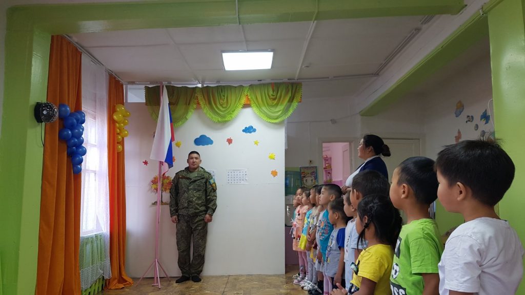 Еженедельная традиция поднятия флага России. Право поднятия флагов предоставилось военнослужащему Армии РФ Оюн М.О.